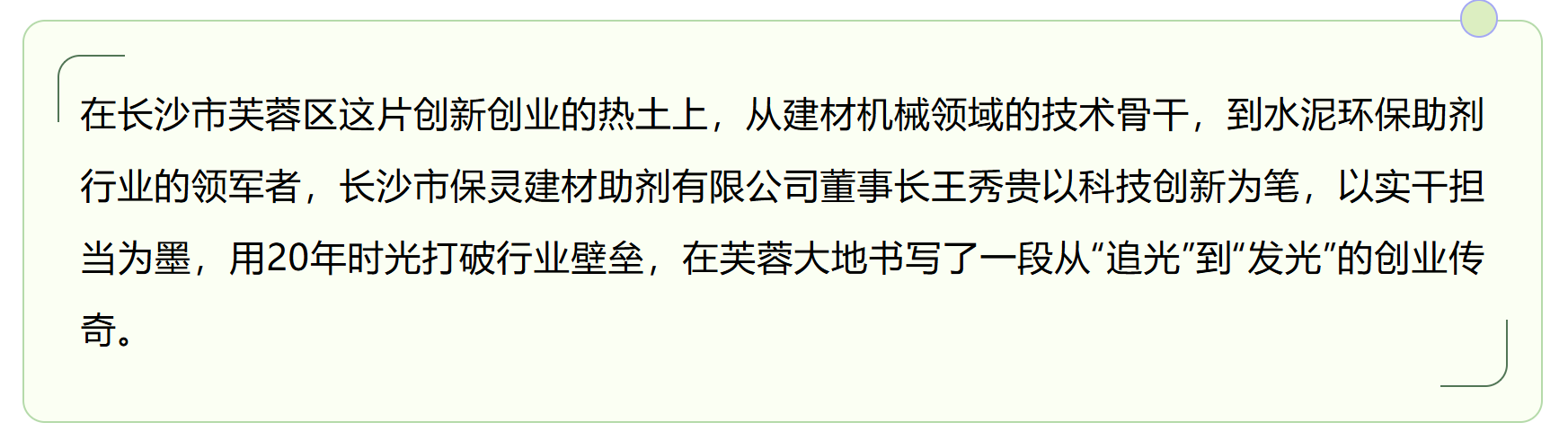 2005年,王秀貴帶著這份初心,在芙蓉區(qū)注冊(cè)成立長(zhǎng)沙市保靈建材助劑有限公司,正式跨界進(jìn)入水泥外加劑領(lǐng)域。